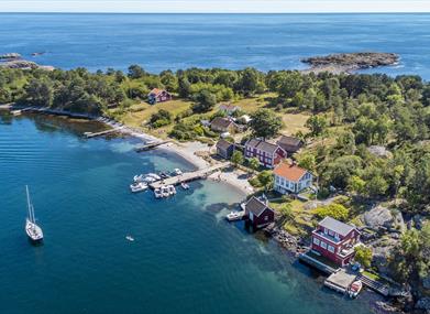Merdø er en sjarmerende øy ved innseilingen til Arendal – et lite stykke sørlandsidyll med hvite trehus, blått hav og noen av regionens fineste strender.