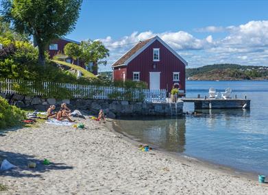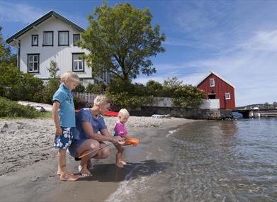 På Merdø finner du langgrunne sandstrender som er perfekte for barnefamilier. Her kan de minste bygge sandslott, bade trygt i det klare vannet – mens de voksne nyter sol og rolig skjærgårdsstemning.