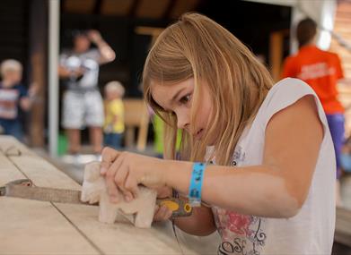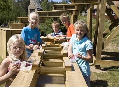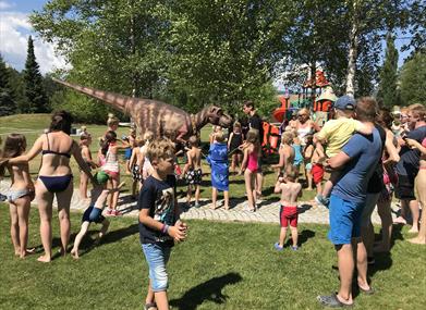 Utendørs er det lagt til rette for lek og aktiviteter for hele familien. Parken er oversiktlig og familievennlig, og her kan barna boltre seg på det 60 mål store parkområdet. Dinosaurjakt i utstillingen, Eventyrbekken hvor barna kan vaske fram ulike mineraler og fossiler, familierebus, geodeknekking (se hvilke skjønnheter som skjuler seg i en tilsynelatende vanlig stein), gulldykking, steinfigurforming og smykkeverksted er noen av de mange aktivitetene som tilbys. I høysesong kan man også spille lasertag og boblefotball - inkludert i billetten.