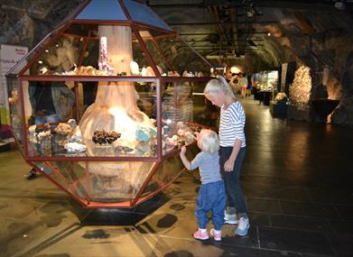 Utgangspunktet for Mineralparken er den spektakulær steinsamlingen, som du finner i utstillingshallen inne i fjellet under besøkssenteret. Mineralparken har bygd opp et unikt utstillingslokale under bakken hvor mineralene er tilbakeført til fjellet igjen. Her har ca. 1200 steiner og mineraler fra hele verden fått sin plass. Mineralenes fargeprakt og særegne form gir publikum en øyeopplevelse de sent vil glemme. I Mineralparkens gavebutikk Steinbutikken finnes et stort utvalg av smykkestein og skulpturer.