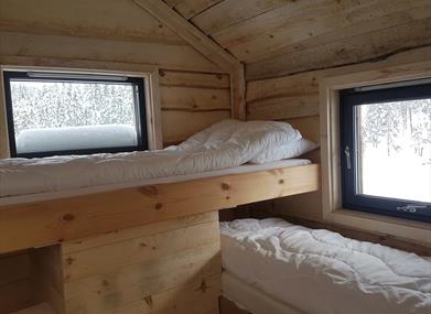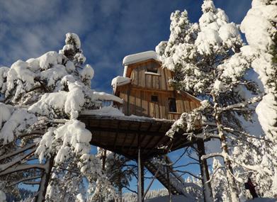 Fra "Utsikten" kan du ligge i teltet og kjenne på at du svever. Teltet henger i nærheten av et stup og her kan du virkelig føle at du sover i høyden. Norwegian Wild Cabins har flere teltmuligheter, en beverhytte og en grillhytte.