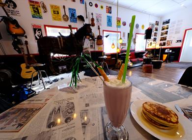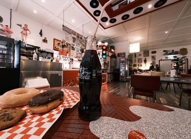 Det første som møter deg er "den amerikanske drømmen" i Nostalgilåvens første etage. "Dineren" som er en kombinasjon av cafè og konsertlokale har en atmosfære som bringer deg tilbake til 50-60 tallet med musikken, bildene på veggen og interiøret. På menye står bl.a. milkshake i tidsriktige glass, bananasplit og Agders største is. Du kan også velge mellom Nashville eller Memphis som er det klingende navnet på pizzaene.