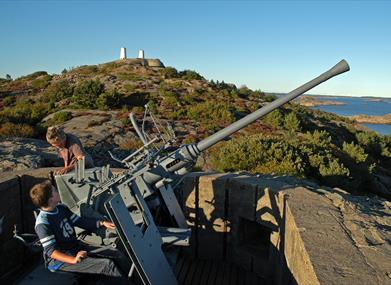 Tyskerne bygde fortet for å beskytte Høllefjorden og innseilingen til Kristiansand vestfra. Store deler av toppen av øya er uthult med tuneller, løpeganger og kanonstillinger. I dag er mange av dem restaurert og sikret slik at du kan gå på egenhånd og utforske anlegget. Her finner du blandt annet 3 stykk 10,5 cm Schneider kanoner og en Bofors luftvernkanon. Husk lommelykt og gode sko.