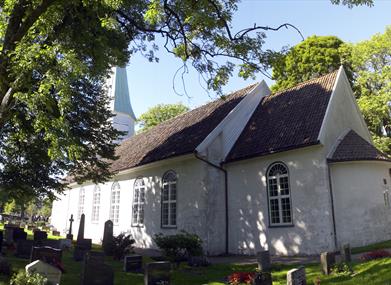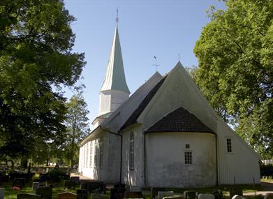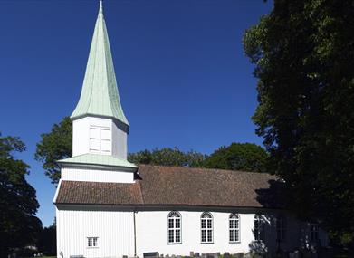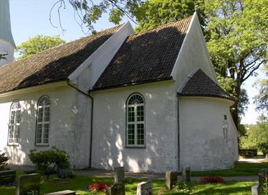 Bygget ca. 1100-1150. Steinkirke i romansk stil, med barokk altertavle og prekestol fra 1704. Runestein i våpenhuset.