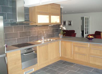 5 gjester, 2 soverom, 5 senger og 1 bad.