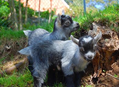 På gården kan du også hilse på dyrene; blant annet kaniner, geiter, hest og høner.