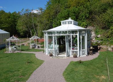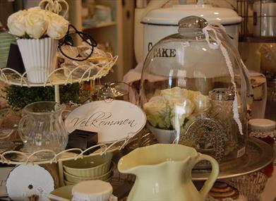 I kaféen er det et stort utvalg småretter, kaker og kalde og varme drikker.