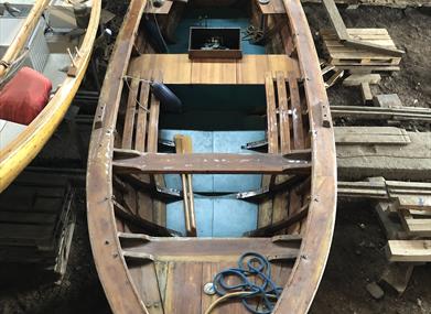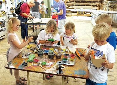 Omvisning i båtbyggeriene og i utstillingen Tista Marinefartøyet fra Moen. Spikking og prøveseiling av selvlaget båt, krabbefiske fra brygga.