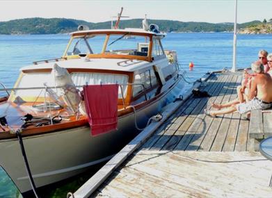 Besøkende båtfolk kan legge til det flotte bryggeanlegget.
