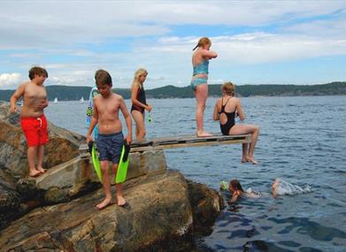 Risøya er et fantastisk sted for barn, med badeplasser, stor gressplen og grillplass.