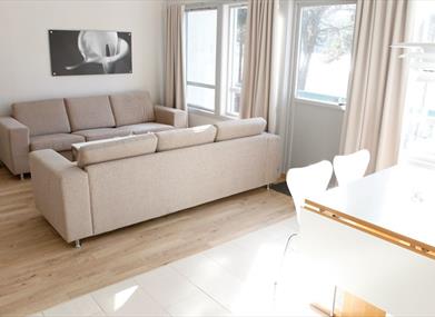 Leilighetene hos Rosfjord Strandhotell i Lyngdal er romslige og komfortable. Det finnes flere typer leiligheter, til 4 - 6 eller 8 personer, men felles for dem alle er nærheten til sjøen og egen terrasse.