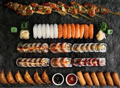 Sabrura Sticks & Sushi serverer sushi, sticks og asiatisk inspirert mat og med en norsk vri. Du kan få buffet eller andre retter fra menyen.