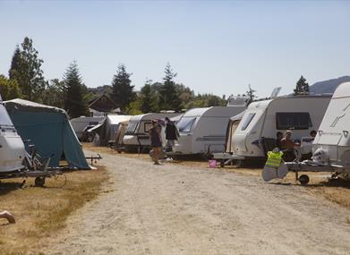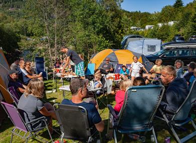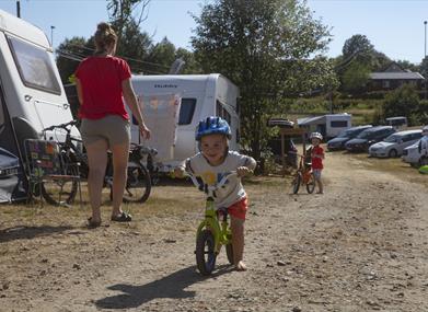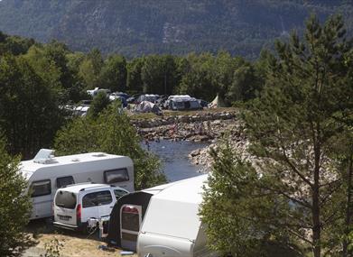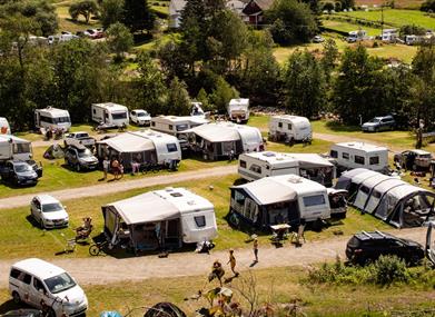 På campingplassen finner du 300+ plasser for vogner, bobil og telt.