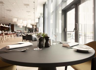 Hotellet har egen restaurant og bar, samt Scandic gym. Hotellet ligger også vegg i vegg med Aquarama badeland, treningssenter og spa - noe som gir flotte muligheter for avslapping mellom møtene.