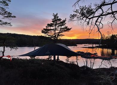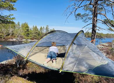 Overnatt i svevetelt av typen Stingray Safari tett på vakker natur. Her kan dere fiske ørret, bade eller bare nyte solnedgangen fra gapahuken rundt bålet. Teltplassen finner dere helt i utkanten av gården, ved Førevatn.