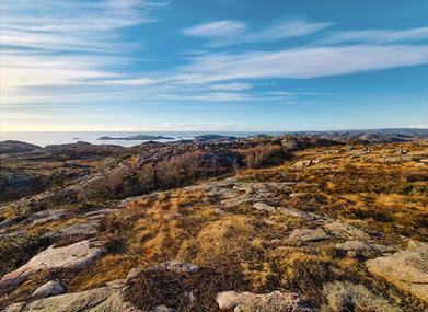 På klare dager kan du se fra Lista i vest til Mandal i øst, og langt nordover til heier og fjell.