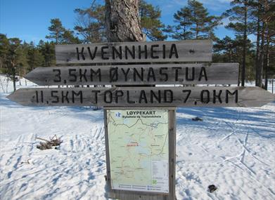 Med sine 300 meter over havet byr området på stabile snøforhold. Løypenettet går i variert og vakkert skogsterreng, og du kan velge mellom flere rundløyper med ulik lengde og vanskelighetsgrad. Mellom Øynaheia og Toplandsheia går det en lang løype, men det finnes tre snarveier, slik at runden kan varieres i lengde. Fra Øynaheia er rundene 2,2 km, 7,0 km, 14,6 km og 16,5 km lange.