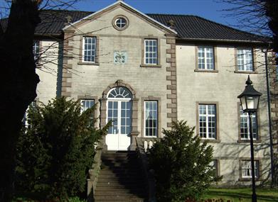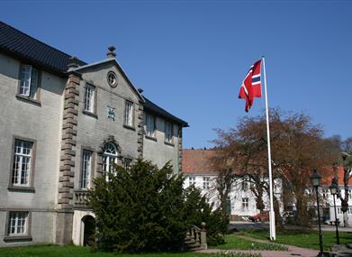 Bygningen er en kopi av et slott som ligger på grensen mellom Skottland og England. Sorenskriver Friderich Fridrichsen var byggherre, og den ærverdige bygningen sto ferdig i 1766. Byggmester George Johnston ble hentet inn fra Nord-England for å utføre jobben, og parken ble anlagt av den dansktyske gartneren Friedrich Ludvig Blumenthal. Skrivergården er i dag en del av byens rådhus.