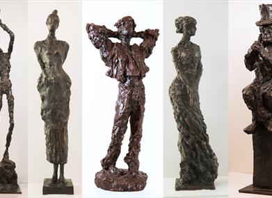 Grimstad kommune mottok høsten 2018 17 skulpturer i gave fra billedhugger Nina Sundbye. Skulpturene er Nina Sundbyes tolkning av Knut Hamsuns og Henrik Ibsens personer. Det var hennes ønske at de skulle til byen der Ibsen og Hamsun har satt så tydelige spor etter seg. Kunstneren tok kontakt med biblioteket for å undersøke muligheten for å plassere dem i byens nye bibliotek. Det er en stor glede for biblioteket, og dermed for byens befolkning, at skulpturene kunne være i dette huset som fungerer som et felles indre byrom.