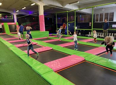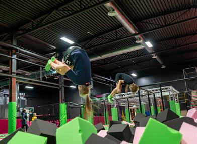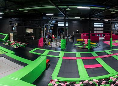 Skyland Trampolinepark er et sted hvor barn og voksne kan utfordre seg akrobatisk på trampoliner, skumgrop, zipline, klatrevegg, sklie, battle bing, Ninja Warrior løype, streetbasket og street fotball variant, airtrack.