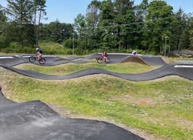 I Alcoa miljøpark kan du teste ut Sørlandets største pumptrack bane. Banen er designet med ulike løyper og vanskelighetsgrader som passer for skate, sykkel og sparkesykkel. Banen er åpen gratis og åpen for alle.