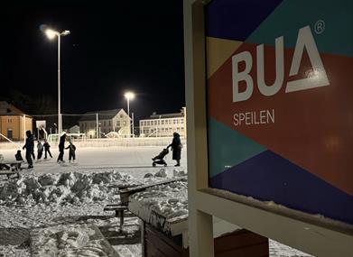 Speilen isbane ligger mellom Speilen betongpark og Mandalshallen. Her kan hele familien kose seg fra morgen til kveld på skøyter. Langs banen er det belysning, benker, bålpanne og toaletter. BUA har satt opp en selvbetjenings stasjon, slik at man enkelt kan låne både skøyter, hjelm og hockeykøller.