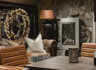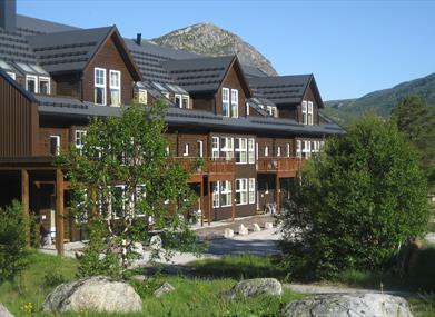 Fra den romslige terrassen kan man nyte ettermiddags- og kveldssolen helt til den går ned bak Hovdenuten, sammen med den vakre utsikten over elva og fjellene. Hele hotellet og restauranten er innredet i rustikk fjellstil, og de ønsker gjestene velkommen til en hyggelig matopplevelse i stemningsfulle omgivelser.