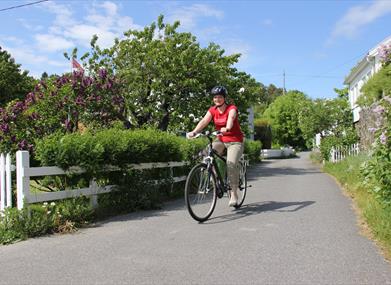 Her kan du velge mellom korte avstikkere eller ta hele rundturen på rundt 40 kilometer, som tar deg gjennom skog, forbi strender og langs sjøen med utsikt mot skjærgården.