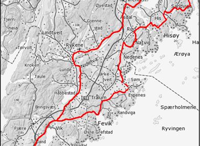 Turen er en av fem ruter som inngår i Thor og Dag Ottos sykkelløyper. Thor Hushovds omvei til Arendal er turen for deg som ønsker å oppleve kyststrekningen mellom Grimstad og Arendal. Turen starter ved Grimstad turistkontor. Du følger fv. 420 nordøstover forbi Grimstad rådhus og via Vikkilen til Vik og videre til Fevik. I Strandsvingen får du nærkontakt med sjøen, og det er mulig å ta seg et bad. På Feviktoppen tar du inn til høyre og følger skilting mot Søm langs Sømsveien. Ta til venstre mot Engene og så til høyre på Østre Vessøya og følg denne ut til fv. 420. Ta til høyre mot Arendal, og fortsett ca. 2 km på rv. 420. Ta til høyre i rundkjøringen på Nedenes og ta veien via Nedeneshallen. Etter ca. 2 km havner du på fv. 420 igjen og følger den mot Arendal. 400 m etter Vippa bro, tar du til høyre mot Utnes og etter ytterligere 750 m tar du til venstre mot Hisøy kirke. Ved T-kryss, ta til venstre. Når du ser Hisøy kirke, følg skilting mot Kolbjørnsvik. Etter 1 km, ta til høyre og følg Gamle Sandvigvei og deretter venstre på Sandvigvei til Kolbjørnsvik. Stopp gjerne opp litt og nyt sørlandsidyllen i Kolbjørnsvik, før du følger Noroddveien og deretter Vikaveien langs sjøen på Hisøya tilbake til fastlandet ved Strømbrua. Følg fv. 420 til Arendal sentrum. Ved Amfi Arena, ta rett frem, så kommer du til Pollen, hvor du kan stoppe for lunsj eller is. For returen, følg samme veien (420) tilbake mot Fevik. I rundkjøringen før Strømbrua tar du første til høyre mot Bjorbekk. Følg fv. 407 langs Nidelva i 9,5 km. Når du krysser Nidelva, følg sykkelstien til venstre. Fv. 53 går parallelt med fv. 407, men har lite trafikk. Veien møter fv. 407 igjen, som du følger helt til Vik. Når du møter fv. 420, ta til høyre, og første til venstre igjen. Så kommer du via Vikkilen tilbake til Grimstad sentrum.