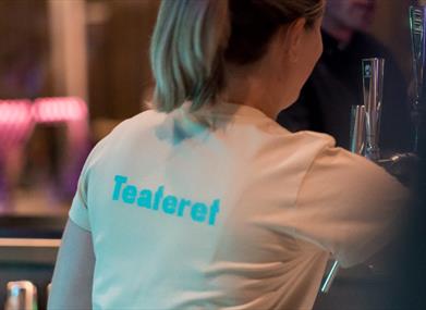 Teaterets restaurant og bar er blant byens mest populære, og har høstet strålende anmeldelser på TripAdvisor, Google og Facebook. Enten du ønsker en helaften med middag og show, eller bare en deilig matopplevelse eller kaffe i særpregede omgivelser, er du alltid hjertelig velkommen – med eller uten billett. Se menyen vår her og bestill bord: www.teateret.no/meny
