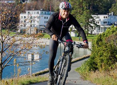 Du kan leie både hybrid og el-sykkel på Turistkontoret. Her kan du også hente sykkelbrosjyre med flere tips om flotte sykkelruter i nærområdet, inkludert de 5 rutene i Thor og Dag Ottos sykkelløyper.