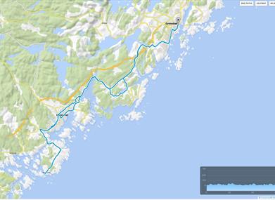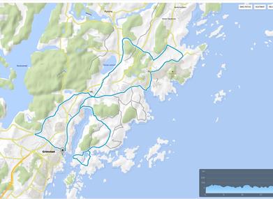 5 runder av av ulik lengde på minimum 30 km - både langs skjærgården og i innlandet. Alle starter og avsluttes i Grimstad.