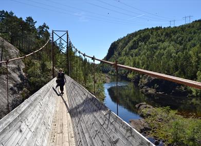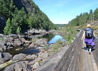 Turstart anbefales ved Steinsfossen, men det er også mulig å starte andre steder. Husk nistepakke, drikke og varme klær. Turen tar ca. 2 timer og passer perfekt for alle alder, hele året. Turen er svært lettgått da man stort sett følger oppi tømmerrenna. Langs turen får du oppleve hengebroer, tunell, rasteplasser, Paulen gård, nedlagte Kringsjå kraftstasjon, svært god utsikt, fantastisk natur og herlige turopplevelser. I tillegg følger man hele tiden tett på sporet til Setesdalsbanen museumsjernbane.
