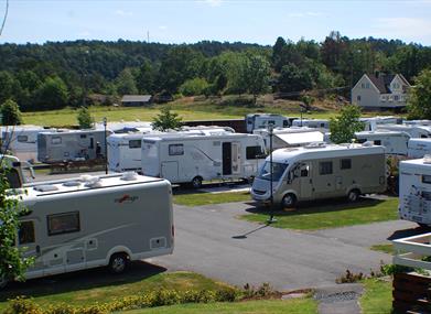 Bie har tilrettelagt for bobiler med eget område som er asfaltert, og på de fleste av plassene er det også egen gressplen til hver bobil.