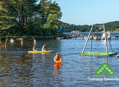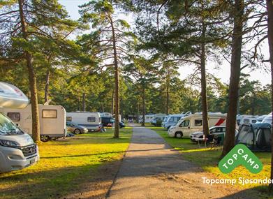 Topcamp Sjøsanden ligger idyllisk til ved vannet, omgitt av ti flotte strender, som passer perfekt for badeglade gjester. Rett ved ligger Furulunden, et populært friluftsområde med stier og natur som er vakkert året rundt.