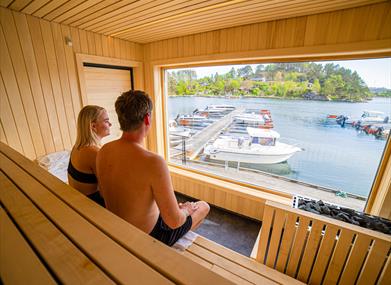 Koble av i badstue hos Tregde ferie like utenfor Mandal