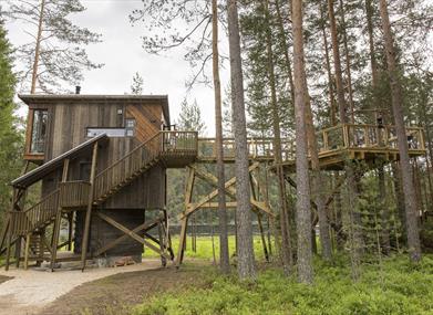Ingenting er spart på for å lage en unik opplevelse med høy kvalitet på både arkitektur, interiør og fasiliteter. Trehyttene er plassert i god avstand fra hverandre så man kan nyte privatlivet. Det er også et yrende dyre og fugleliv rundt hyttene, der det er mulighet for å få se hjort, elg, bever, ørn og småfugl. Dette er en ferie du aldri vil glemme.
