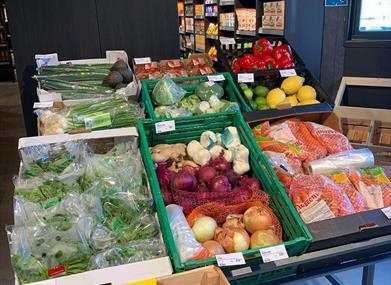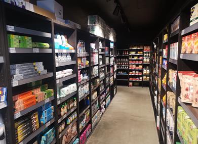 Ferieanlegget har en koselig landhandel med et godt utvalg av dagligvarer og Søgnes største kuleis fra Hennig Olsen!