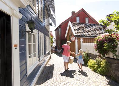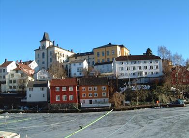 På turistkontoret finnes det turkart med beskrivelse av den gamle bebyggelsen på Øvre Tyholmen.