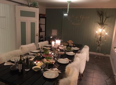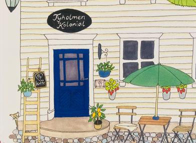 Tyholmen kolonial tilbyr i tillegg et lite, koselig lokale til leie for mindre selskaper. Her i deres chambre séparée er det plass til 6-12 personer.