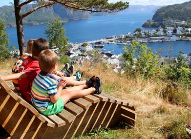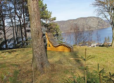 Det er satt ut bord og benker, så du kan spise lunsj der. Du finner også en spesiallaget benk som et par kan sitte behagelig på for å nyte utsikten.