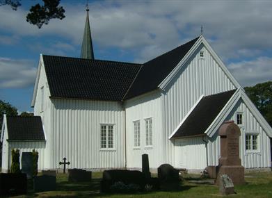Altertavle fra 1630 med malerier av Gotfried Hendtzschel. Kirken ble utvidet til korskirke i 1797. Restaurert i 1966.